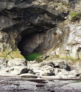 Once at Enderts Beach, the beauty of it all is overwhelming. Standing on top of the small, rocky bluff that juts onto the sand, a glance to the east reveals a small, narrow canyon lined with ferns and trees. Nickel Creek, cluttered with huge drift logs that winter storms have crammed into the ravine, slowly filters through the mighty tree trunks, winds around the bluff and merges with the sea.