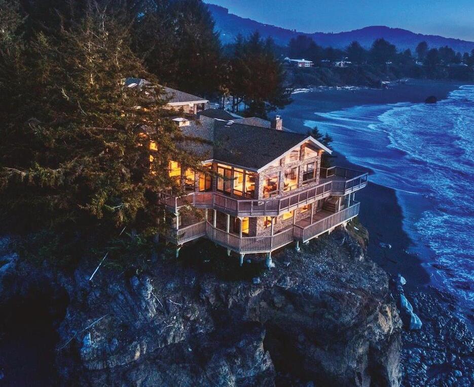 The building offers spectacular views of the Pacific, and the park includes trails leading down to the beach and to the mouth of the Winchuck River.
