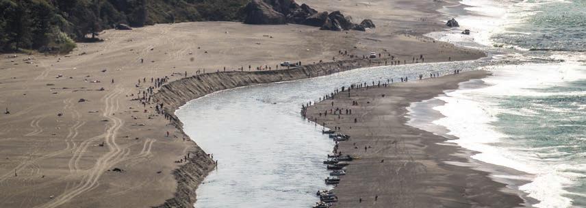 Continue up Requa Road to a parking lot on your left that overlooks the Mouth of the Klamath River to the south. During salmon season, fishermen amass on the water and sandy spit.