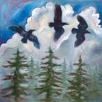 Three Ravens Over Gearhart, Rachel Speakman, Oil on Canvas 36”x36