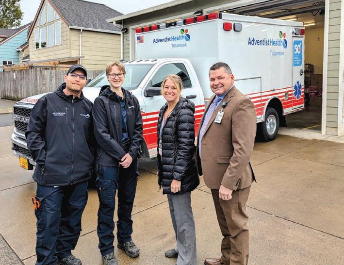Featured Adventist Health Tillamook Ambulance team members shown left to right: Joe Compston, Autumn Patching, Jackie Fox, Eric Swanson