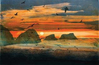 The gallery will be featuring new paintings by Christopher Mathie and printmaking by Stirling Gorsuch. Christopher Mathie is known for his moody seascape pantings, he’ll be unveiling a new body of work for this exhibition that was influenced by his recent travels abroad to Thailand. Stirling Gorsuch is a talented printmaker who grew up in Cannon Beach. He creates detailed linocuts and painterly monotypes that reflect his deep connection to time spent in Oregon’s landscapes.