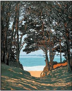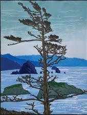 Stirling Gorsuch creates intricate linocuts and expressive monotypes that pay reverence to the forests, ocean and mountains in the region. As an avid explorer, memories and experience shape the way Gorsuch renders the natural world in his printmaking process. His painterly monotypes are full of movement and energy recalling the windy coastal environment, while his detailed linocuts capture the stillness of fleeting moments in time, often combining several vantage points into poetic compositions. The artist grew up in Cannon Beach in an artistic household, surrounded by our local coastal scenery and landscapes from throughout Oregon. This new body of work reflects his deep connection to the Pacific Northwest.
