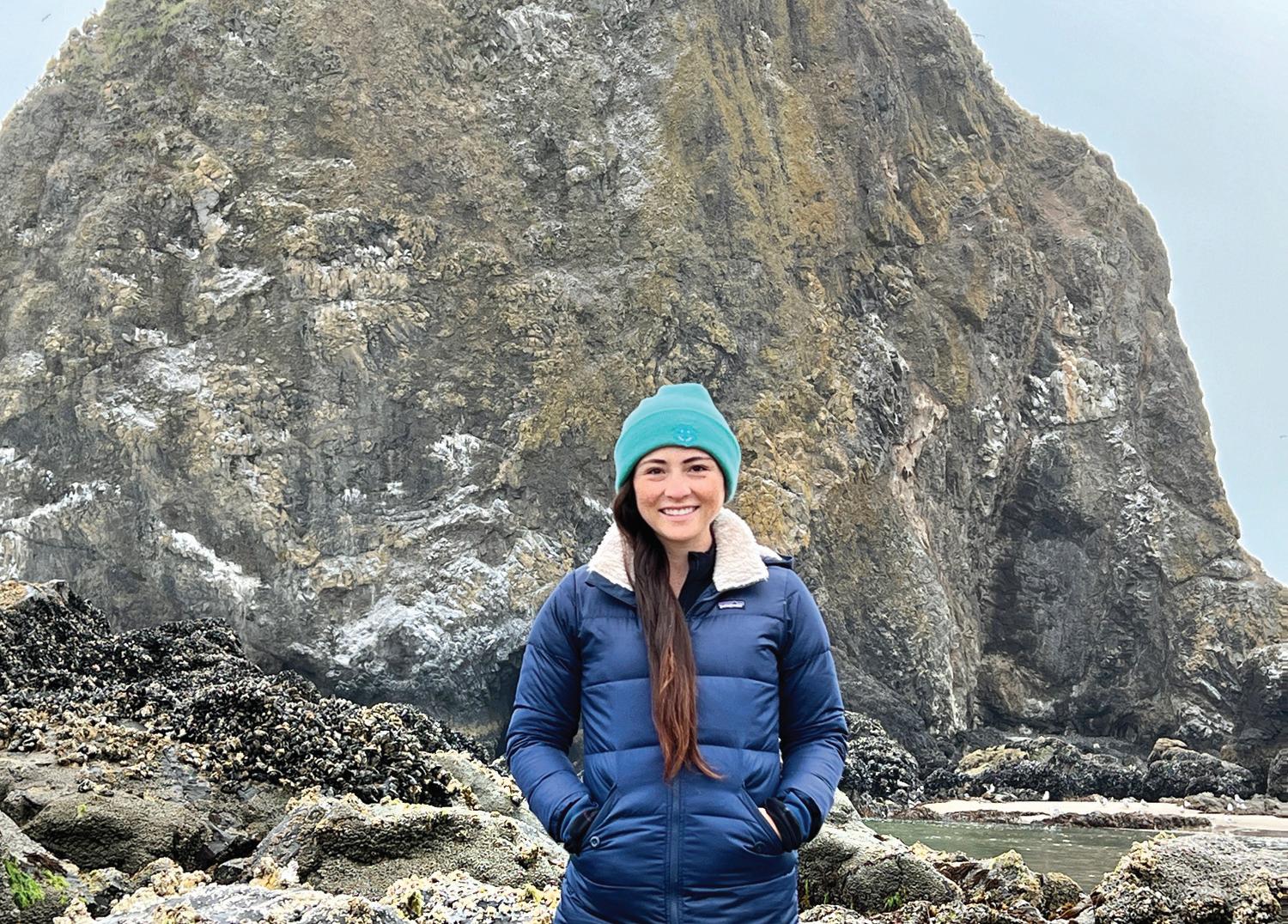 Kelli Ennis standing in front of Haystack Rock, photo by HRAP