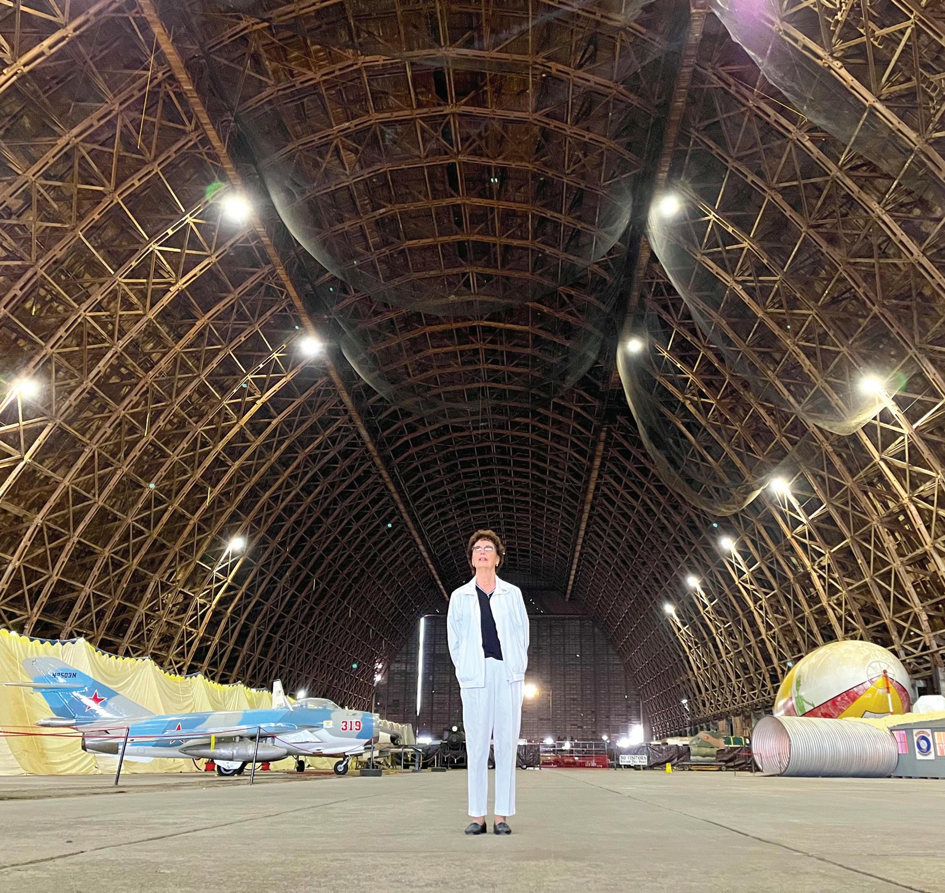 Carolyn Decker inside Tillamook Air Museum’s Hanger B