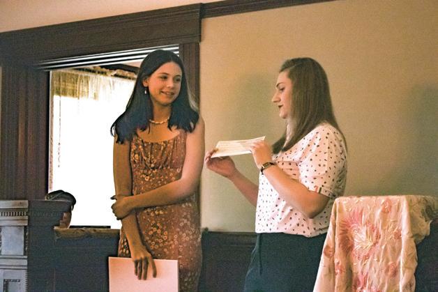Courtesy from Nikole Young Kaydence DeCaro receives her award from the Clatskanie Chamber of Commerce for the winning Heritage Days theme logo.