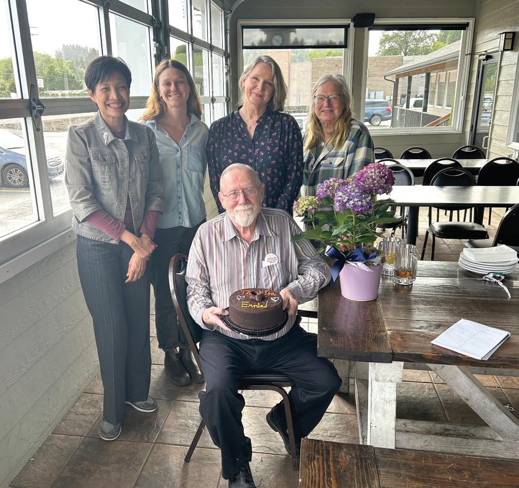 Ernie Carman, center, and fellow board members, left to right, Kannikar Petersen, Jasmine Lillich, Margaret Trenchard-Smith, and Dee Vadnais.