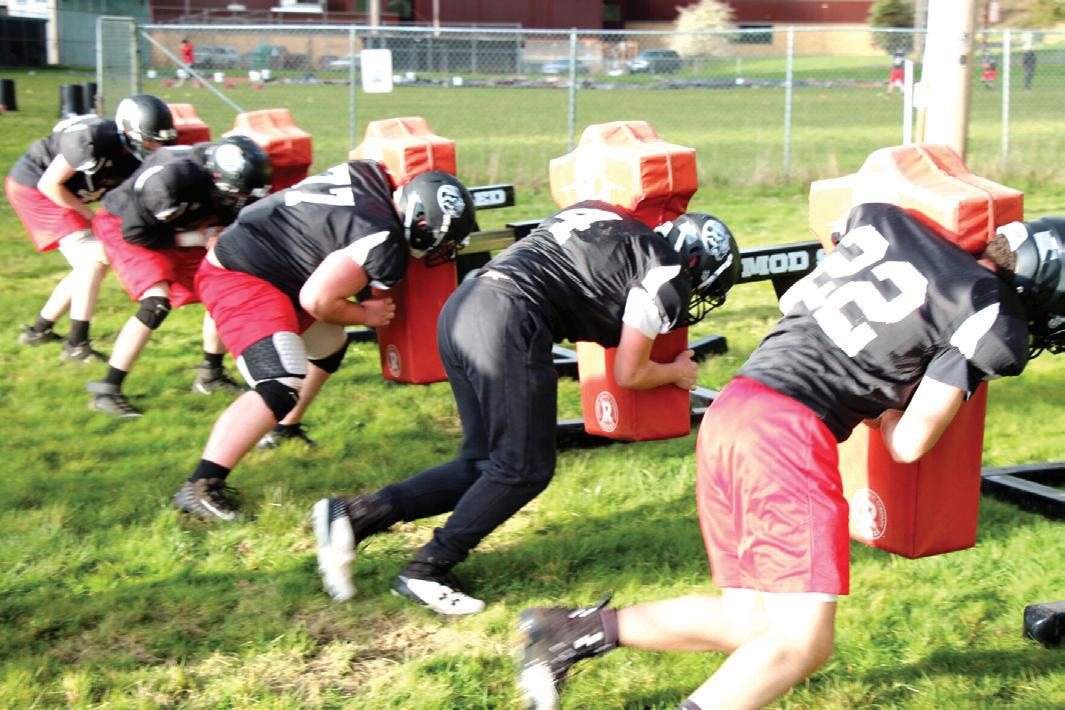 Jeremy C. Ruark / The Chief Football practice for CMHS players involves a show of strength.