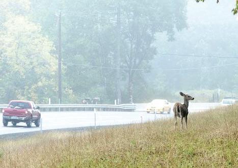 The vehicle collisions peak in October and No vember, when migration and breeding (the “rut”) puts the deer and elk on the move, making them more likely to be crossing roads. Fewer daylight hours and rainy weather also reduce driv ers’ visibility, increasing the danger of collision.