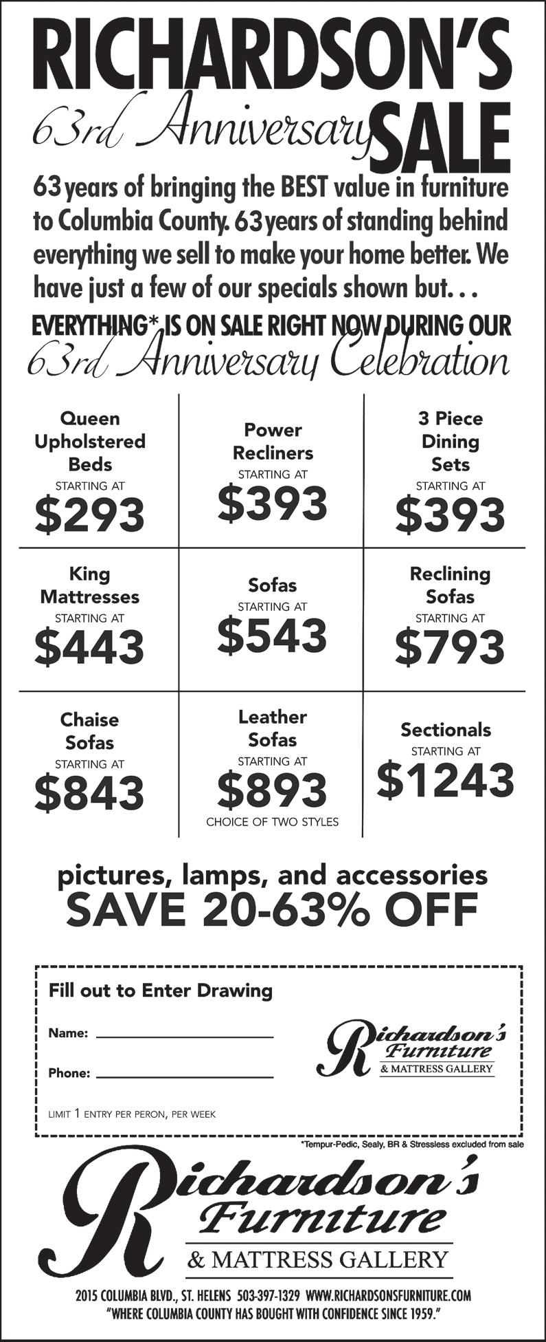 NO EARLY CALLERS PLEASE ANOTHER MASSIVE ESTATE SALE AT THE BIG RED BARN ADJACENT SCAPPOOSE CREEK INN: Got Cedar and Noble trees? If so, we want your boughs! Paying 17 cents per pound. We do all the work, with over 20 years of experience. Call Crystal at 360-957-2578 or Ricardo 360-751-1045 860 Storage buy and sell in the classifieds Call The chief at 503-397-0116 to place your view classified ads in the Chief and online at thechiefnews.com Need a job? check the classifieds online at www.thechiefnews.com to find your perfect job offer Place your ad in The Chief. Email Jon at chronicleads@countrymedia.net. • •C ommunity e V ents • •