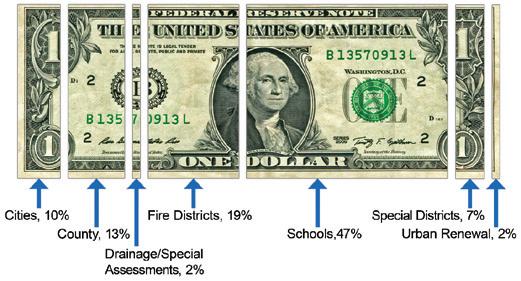 receive more than 19 percent of the total. But the vast ma jority of taxes (47 percent) go towards education, including five school districts, one edu cational service district, and Portland Community College.