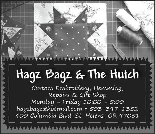 1891 VOL. 131, NO. 29 $1.50 FRIDAY, NOVEMBER 25, 2022 Shop local Page A4 Oregon Revenue Forecast Page A3 Community Calendar A4 Opinions ................... A4 Classified Ads ......... A5 Legals ....................... A5 Phone: 503-397-0116 Fax: 503-397-4093 chiefnews@countrymedia.net 1805 Columbia Blvd., St. Helens, OR 97051 Contact The Chief