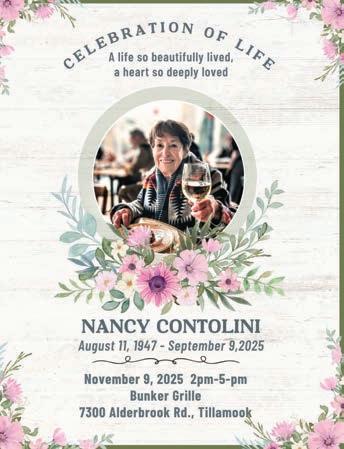 Pastor Mary Peterson 10 a.m. Worship Every Wednesday at 5:30 p.m. Holden Evening Service 30 min. Everyone is Welcome EMMANUEL MISSIONARY BAPTIST CHURCH Sunday: 10 a.m. Sunday School 11 a.m. Church Service Wednesday: 7 p.m. Midweek Service 1906-A 3rd Street, Tillamook, OR 97141