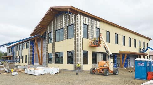 a bus stop. Installation of exterior siding panels was also underway in early July. Once complete in mid to late July, the tiles will be painted the same color as the college’s main building, as will the college’s center for industrial technology and a wellhouse for the Pleasant View utility district that sits on campus,