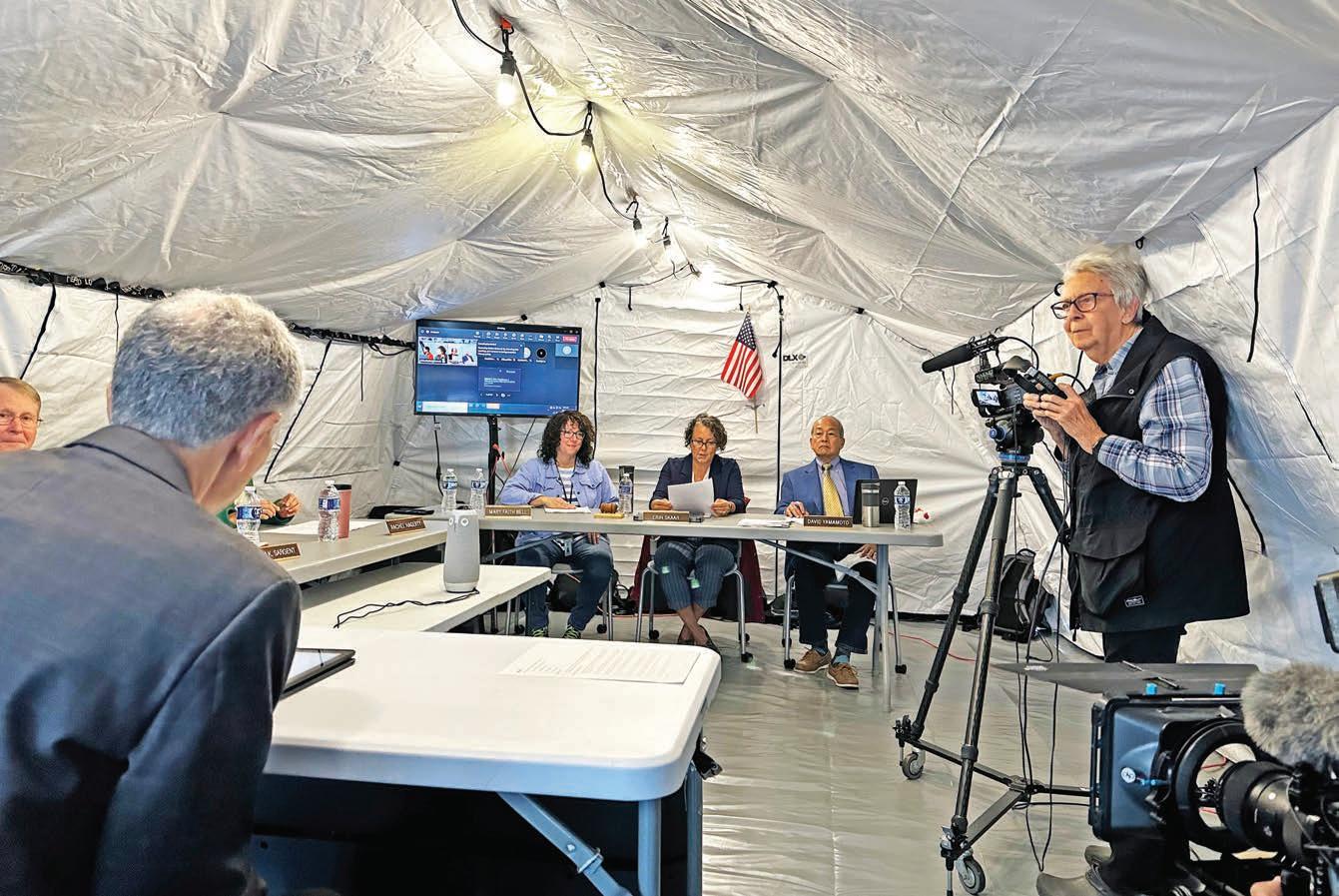 Local volunteers showed up in force and helped to assemble the evacuation point in just three hours on Tuesday, and the board of county commissioners held their regular weekly meeting in a tent at the assembly point on Wednesday before