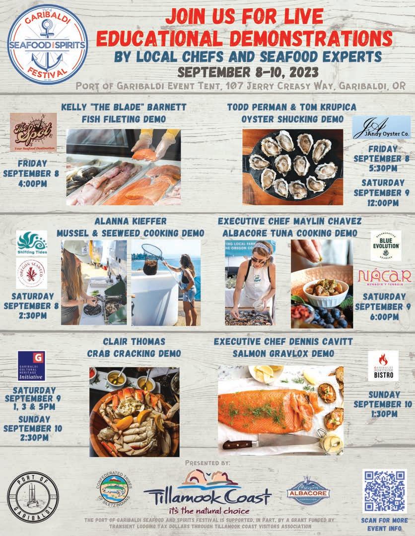 The Port of Garibaldi Seafood and Spirits Festival is supported, in part, by a grant funded by Transient Lodging Tax dollars through Tillamook Coast Visitors Association. Also we would like to thank all our generous sponsors for making this event possible, including Tillamook County Cultural Coalition, Grocery Outlet, the Confederate Tribes of Siletz Indians, TLC, Fibre Federal, Vacasa, Berkshire Hathaway NW Real Estate – Garibaldi Office, Pacific Metal, the Oregon Albacore Commission, the Oregon Dungeness Crab Commission, Oregon Coast Bank, and Englund Marine. Follow us on Facebook to get the latest updates and schedule of events! https://www. facebook.com/GaribaldiSeafoodandSpiritsFestival For more information about the at 503-374-1424. Event Location: Port of Garibaldi Event Tent, 107 Jerry Creasy Way, Garibaldi, OR 97118