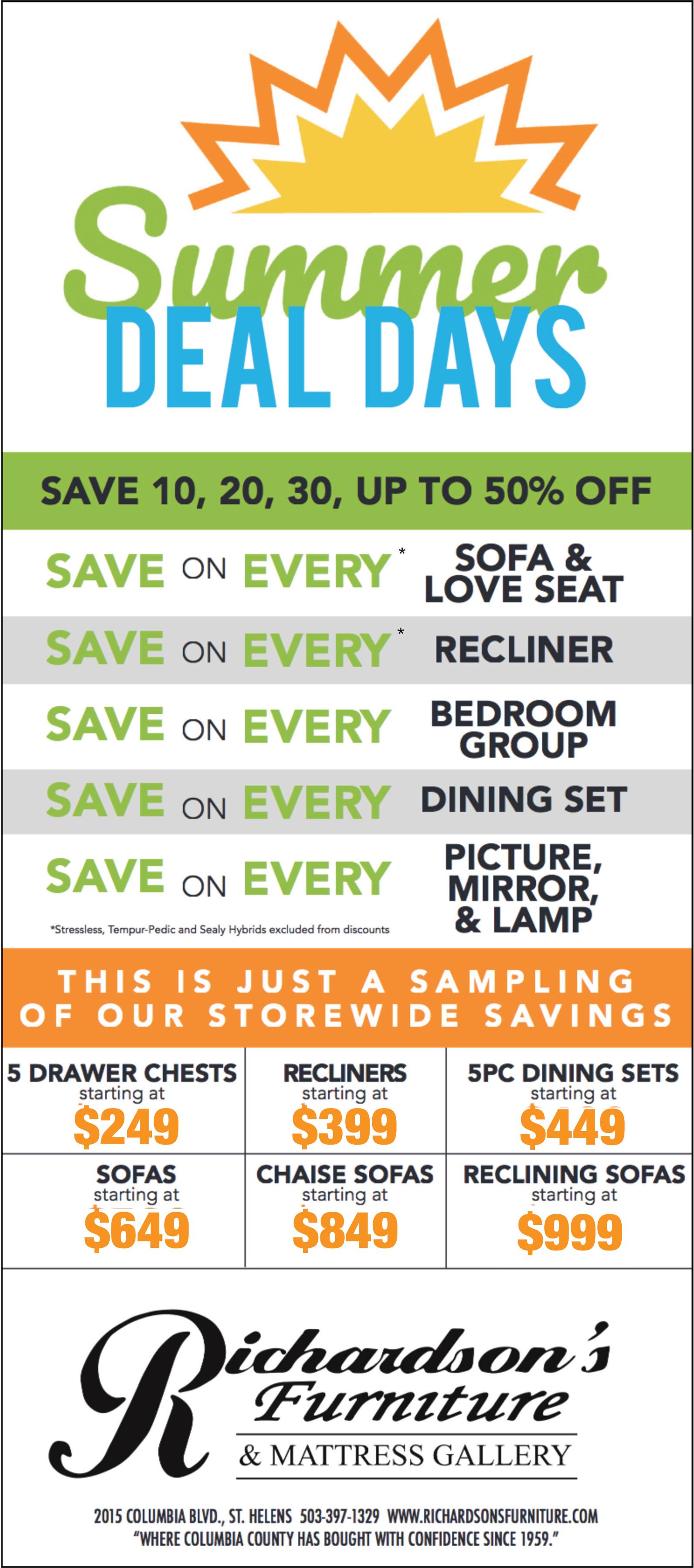Page 2 Wednesday, August 9, 2023 News Advertiser Columbia County Classifieds Listings are updated daily at thechronicleonline.com and thechiefnews.com Waterman Garage DoorsCCB#204858 SALES, SERVICE INSTALLATION 503.819.6715 St. Helens, OR 97051 Scott Waterman Owner Advertise your business in the Business & Service Directory. Call 503-397-0116 for more information YOUR AD HERE Columbia County Business & service Directory www.thechronicleonline.com Get your ad in the paper and reach out to potential customers. Call 503-397-0116 to place your ad in the newspaper and online. Garage Sale Special! Advertise your garage sale in the paper and online for only $10 for up to 14 lines! Email chronicleclassifieds@countrymedia.net to advertise! 502 Help Wanted 502 Help Wanted 301 Health & Nutrition Send subscription info to PO Box 1153, St. Helens OR 97051 Card No. __________________________________________ Exp. Date _________________ Name ______________________________________________________________________ Address ____________________________________________________________________ City __________________________________ State ________________ Zip _____________ Phone Number ______________________________________________________________ Enclosed is my check for $70.00 Bill my VISA/Mastercard Subscribe me to the: The Chronicle The Chief $70 a year in Columbia County, $90 a year for outside county SubScribE to your favoritE local county nEwSpapEr and Get free access to online news Let us know what YOU think EMAIL YOUR LETTERS TO: CHRONICLENEWS@COUNTRYMEDIA.NET 702 Garage Sales Paid Vacation Excellent pay D.O.E Yearly Bonus Steady Year Round Work Monday Thru Friday Paid Holidays HELP WANTED Quarry-Crushing Foreperson • Utility-Loader Operator Dump/Pup Driver • Equipment Mechanic/Operator BCX1996@gmail.com Rainier, Oregon 360.431.5599-Craig Alcoholics Anonymous Info-line, (503) 366-0667 www.pdxaa.org 502 Help Wanted Immediate Opening Sewing, taping, etc. Part-time 6-Noon, M-Th. Apply in person only. 33550 SE Santosh St. Scappoose, OR 97056. Habitat for Humanity is seeking an Assistant Manager for our St. Helens, ReStore. 20 Hours per week, Saturdays included. $18.00/ hr. Retail experience required. Successful candidate will work well with volunteers and customers. Must possess a valid driver’s license and pass background checks. See job description at: habitatcolumbiacounty. org/employmentopportunities. 604 Recreational Vehicles For Sale 2010 cougar 5th Wheel 278RKS 503-543-2829 702 Garage Sales Garage Sale A little of everything (check it out). Sat. Aug. 12 from 9 am - 4 pm. 350 Hankins Dr., St. Helens. (Corner of Hankins and Pittsburg Rd.) 15th Annual Garage Sale & Pop-up bakery To benefit Lil Learners PreSchool Aug. 11 & 12, from 8 am- 3 pm. 58690 Ross Rd. inside Grace Baptist in Warren. Huge Garage Sale Fri. 8/11 & Sat. 8/12 from 8 am - 5 pm at 34948 Sykes Rd. Household items, furniture, patio furniture, and lots of misc. No earlies. 706 Estate Sales Scappoose Estate Sale 8/12 & 8/13 from 9 am - 3 pm. Mountain View Rd., look for signs. Cash only. Vintage Barbie & toys, like new 70s furniture, barware & shotglass collection, riding lawnmower, shop tools, new hospital bed, wheelchair, Stihl blower, and concrete gnomes, Christmas, garden and more. 706 Estate Sales 706 Estate Sales Classified Ads Deadline: Mondays by noon. Late submissions are not guaranteed to make it into the paper. 702 Garage Sales check the classifieds online at www.thechronicleonline.com to find your perfect job offer Need a job?