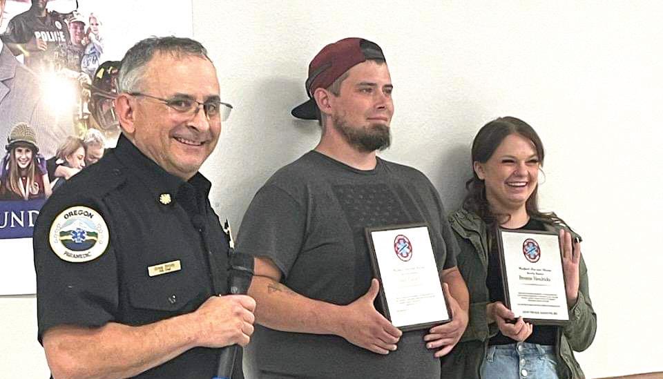 Westport Fire and Rescue honored Breanne Hendricks and Alec Hansen at a Citizen’s Award Ceremony on Aug. 9 for their roles in saving Hazen’s life during a house fire July 10.