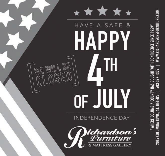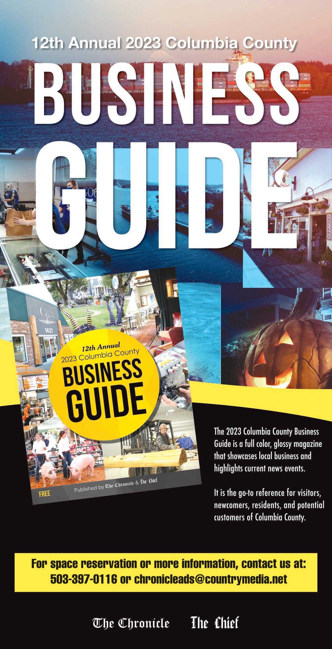 Wednesday, June 28, 2023 Page 3 News Advertiser Columbia County NEW TO THE CHRONICLE Online Insert Flipp Interactive Exclusive Deals from Fred Myer and more! go to thechronicleonline.com/inserts NEW TO THE CHRONICLE Online Insert Flipp Interactive Exclusive Deals from Fred Myer and more! go to thechronicleonline.com/inserts Hosting a ? Contact The Chronicle at 503-397-0116 or chronicleclassifieds@countrymedia.net to get your garage sale in the classifieds. 503-397-0116 1805 Columbia Blvd., St. Helens, OR 97051 The Chronicle Local news online Keep up to date on local stories, events, and ads by visiting thechronicleonline.com. Below is a list of WHERE to pick up a FREE copy of the print edition of the News-Advertiser. Also available every week at: thechronicleonline.com and at thechiefnews.com CLATSKANIE • CLATSKANIE SAFEWAY • HI SCHOOL PHARMACY IN CLATSKANIE • CLATSKANIE MARKET SCAPPOOSE • ROAD RUNNER GAS & GROCERY • JACKPOT 76 • ENGSTROM CHEVRON • B&B MARKET • FRED MEYER • SMOKE SHOP • NELSON NEIGHBORHOOD MARKET • ACE • GROCERY OUTLET ST. HELENS • CHUBB’S CHEVRON • SHERLOCK’S • YANKTON STORE • ZATTERBURG’S • MARKET FRESH • WALGREENS • BEST WESTERN • MOLLY’S MARKET • ACE • DON’S RENTAL DEER ISLAND • DEER ISLAND STORE COLUMBIA CITY • COLUMBIA CITY GROCERY & GAS RAINIER • ALSTON STORE • DOLLAR GENERAL WESTPORT • THE BERRY BATCH RESTAURANT • WEST MART STORE thechiefnews.com 503-397-0116 The Chief Read The Chief online Visit thechiefnews.com to get access to local news daily. Available on your home computer, tablet, and smart phone. Enjoy live access to local classifieds, obituaries, sports, and traffic news. Let us know what YOU think EMAIL YOUR LETTERS TO: CHRONICLENEWS@COUNTRYMEDIA.NET
