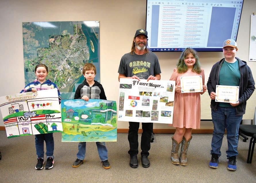 right, Kali Ann Dovel, Japhy McMartin, St. Helens Mayor Rick Scholl,