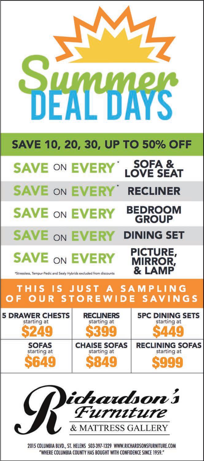 Wednesday, August 30, 2023 Page 3 News Advertiser Columbia County Starting a local business? Get the word out in the paper and online by advertising with The Chronicle and The Chief Call 503-397-0116 thechiefnews.com 503-397-0116 The Chief Local news online at The Chief Visit thechiefnews.com to get access to local news daily. Available on your home computer, tablet, and smart phone. Enjoy live access to local classifieds, obituaries, sports, and traffic news. NEW TO THE CHRONICLE Online Insert Flipp Interactive Exclusive Deals from Fred Myer and more! go to thechronicleonline.com/inserts NEW TO THE CHRONICLE Online Insert Flipp Interactive Exclusive Deals from Fred Myer and more! go to thechronicleonline.com/inserts The Chronicle NEW TO THE CHRONICLE Online Insert Flipp Interactive Exclusive Deals from Fred Myer and more! go to thechronicleonline.com/inserts 503-397-0116 1805 Columbia Blvd. St. Helens, OR 97051 The Chronicle Local news, every day, online. Keep up to date on local stories, events, and ads by visiting thechronicleonline.com. Having a Garage Sale? Contact The Chronicle at 503-397-0116 or chronicleclassifieds@countrymedia.net to get your garage sale in the classifieds.