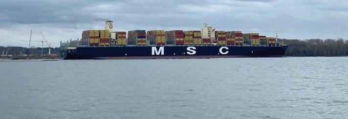 of the largest cargo ships to be on the Columbia River, traveled from Seattle, past Astoria to Portland this week. The vessel, MSC Katie, is 1,200 feet long and 158 feet wide. The MSC can carry