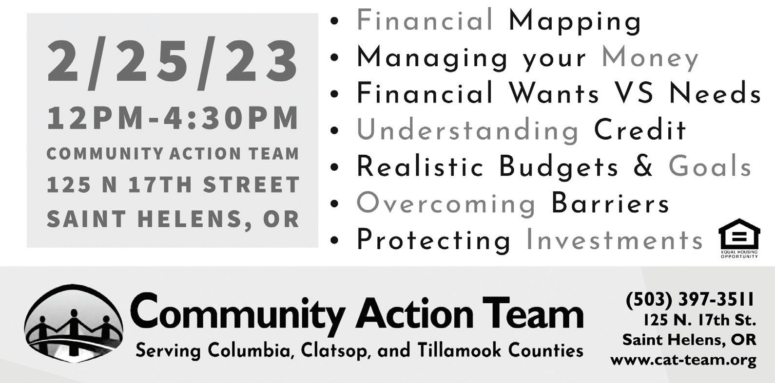 Wednesday, February 22, 2023 Page 3 News Advertiser Columbia County 503-397-0116 thechronicleonline.com 1805 Columbia Blvd. St. Helens, OR 97051 The Chronicle Keep up to date on local stories, events, ads, and counci news by visiting thechronicleonline.com. Local county news online Vendors Wanted Contact Jon at 503-397-0116 chronicleads@countrymedia.net At The Columbia County Fairgrounds: 58892 Saulser Rd. St. Helens, OR 97051 $3 admission at the gate Call 503-397-0116 to request free tickets May 20 Saturday 10am - 5pm May 21 Sunday 11am - 3pm PRESENTED BY The Chronicle The Chief Columbia County