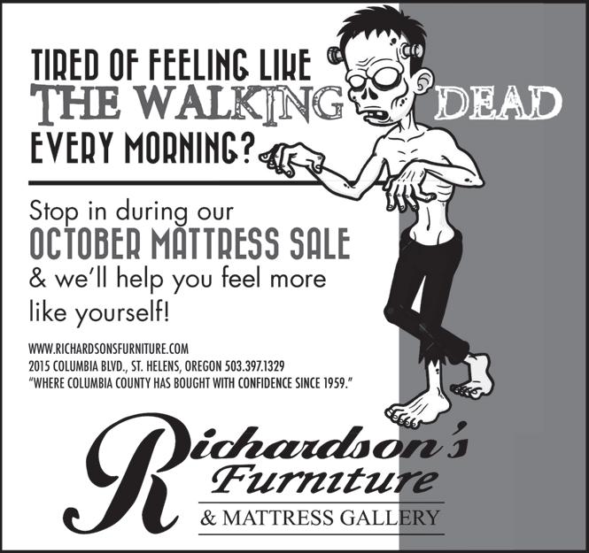 of Halloween will oversee a children’s and family parade at the Courthouse Plaza at 2 p.m. There will be a Scary Good Book Sale at the St. Helens Public Li brary from 10 a.m. to 2 p.m. and a Garden Club plant sale on the porch starting at 9 a.m.