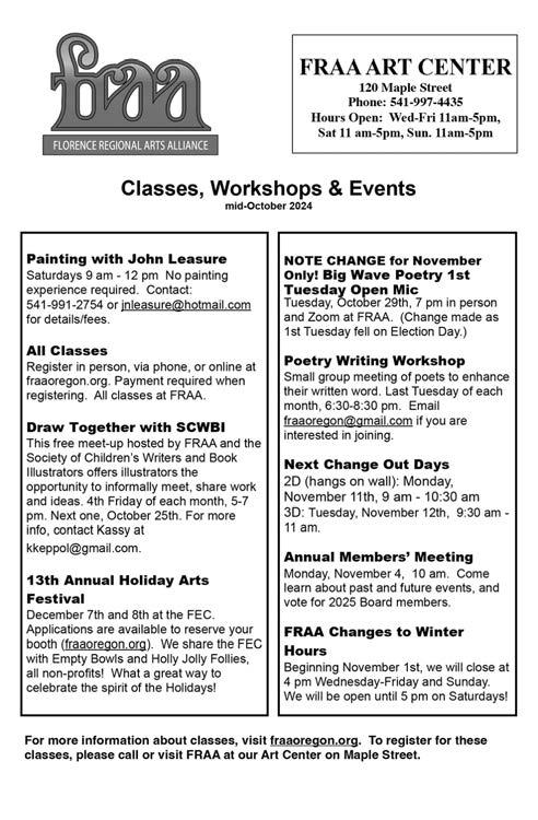 Corner of 10th & Maple St. • 541-997-3533 www.florencecrossroadag.org email: office@florencecrossroadag.org