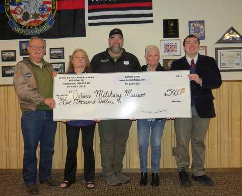 Cal Appleby Museum Board Member, Donna Smith ER Florence Elks, Mike Guggenmos Vets Chairmen Florence Elks, Karen Smales chair Florence Elks and Geoff Cannon Director Florence Military Museum