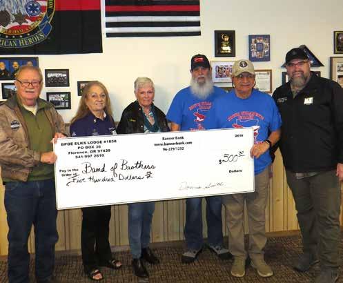 Cal Appleby chairman Band of Brothers, Donna Smith ER Florence Elks, Karen Smales chairman of the Board Florence Elks, Steve Baggin Band of Brothers, Jerry Hernandez Band of Brothers and Mike Guggenmos Vets Chairmen Florence Elks