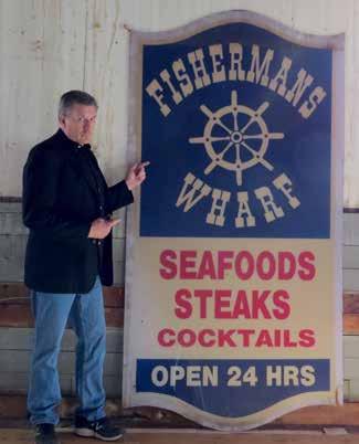 Editor Tony Reed stands with a sign of old times, leftover from the former Fishermans Wharf.