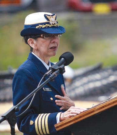 Retired Coast Guard Capt. Sharon Armstrong speaks to the crowd. Tony Reed photos.