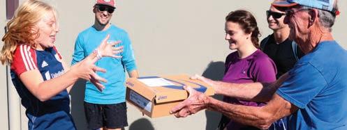 A local man donated 28 pairs of Asics running shoes to the Siuslaw Middle School Cross Country team. Jim Archer said he’s been running since he was about nine-years-old and has always supported local athletic programs. “I’ve tried to help out the kids and the different teams over the years,” he said explaining that he had moved away from the area for about eight years. “I moved back and figured, ‘well, I should try to do something,’ and I saw them running one day and thought there’s a good place to start.” Kids provided their shoe sizes in advance and each were presented with a new pair Sept. 20 at the Middle School. The team tried on the shoes and once all were laced up, they ran around the school and south on Oak Street as part of their routine practice.