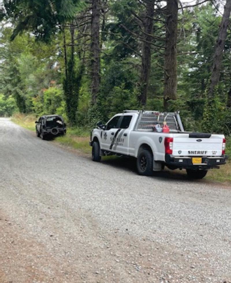Contributed photo A campfire got out of control and burned a small way before it was extinguished Tuesday morning. On August 7 around 10:27 a.m., Coos County Dispatch received notice about a stolen and stripped black 2006 Blazer abandoned on Chandler Road near Rosa Road in Bandon. Deputy M.R. Smith, with assistance from Bandon Police Department, confirmed that the vehicle was stolen and was abandoned at the location between 9 p.m. on August 6 and the time Coos County Dispatch received notice on August 7. The Coos County Sheriff’s Office is requesting your assistance in obtaining any information that assists in identifying the person(s) responsible for stealing, stripping, and abandoning the vehicle. If you have any information, call the nonemergent line at (541)396-2106. Abandoned and stripped vehicle sparks investigation Contributed photo A 2006 Chevy Blazer was found stripped and abandoned on August 7 near Bandon.