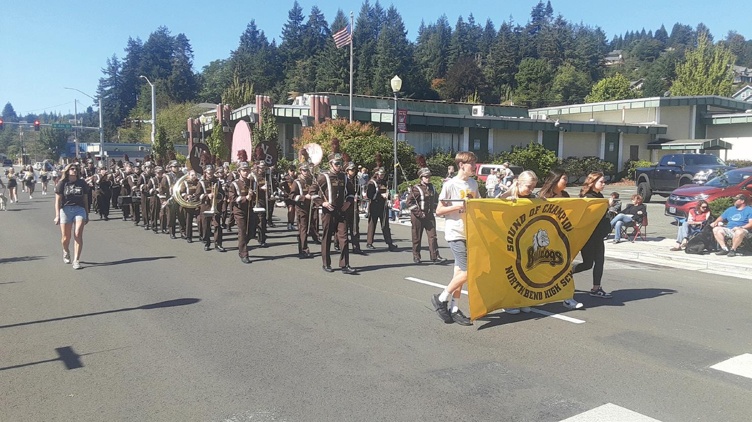North Bend High School marches proudly along Commercial Avenue and Marshfield High takes Fourth Street as part of Coos Bay Downtown Association’s celebratory parade for the 2024 Bay Area Fun Festival on Sept. 21.