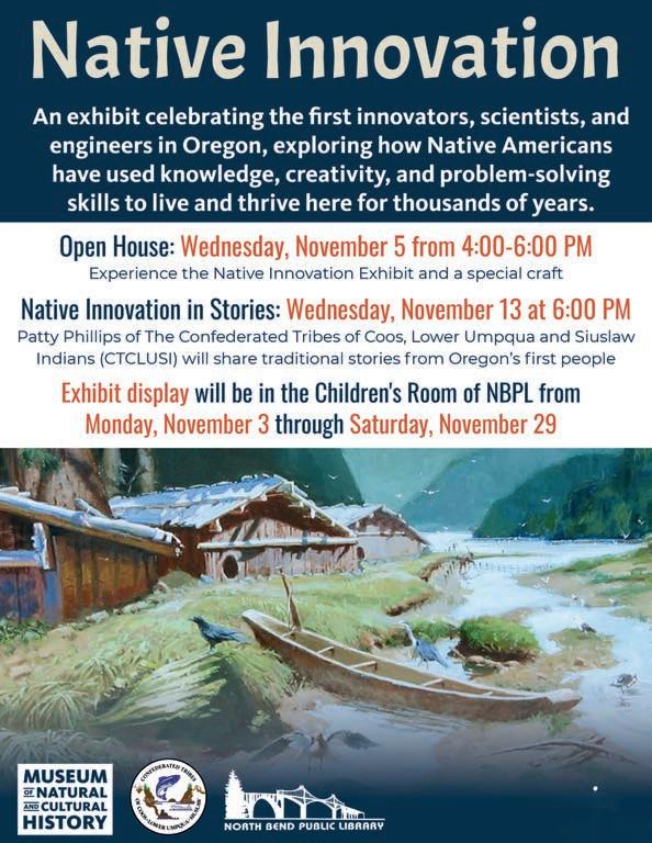 More info: coosbaylibrary. org (541) 269-1101 x 3606 • jknight@coosbaylibrary.org