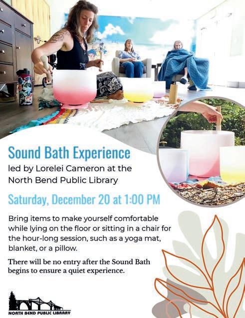 “Sing We Now of Christmas” presented by Ripple E ect Chorus and Summer Wind Ensemble, Sunday, Dec. 14, 2 p.m. First Presbyterian Church, 592 Edison Avenue SW, free admission, cash donations accepted for Good Neighbors and Food and Faith. Traditional and modern Christmas music, followed by caroling. Meet the artists of Image and Nature, Kimberly Wurster and Cary Weigand, Bandon Library Art Gallery Sprague Room, noon to 2 p.m., Saturday, Dec. 13. Movie Night at the Sprague, Dec. 19, 7 p.m., $5. “It’s a