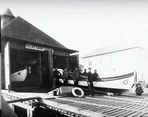 “ e deed to a portion of the land on which the station is built was given by the Dyer estate and was used as a boathouse site ( rst photo) by the U.S. Lifesaving Service, which later became the coast guard. e deed provides that whenever the government ceases to use the property for life-saving purposes, the land, together with improvements, reverts to the original owners.