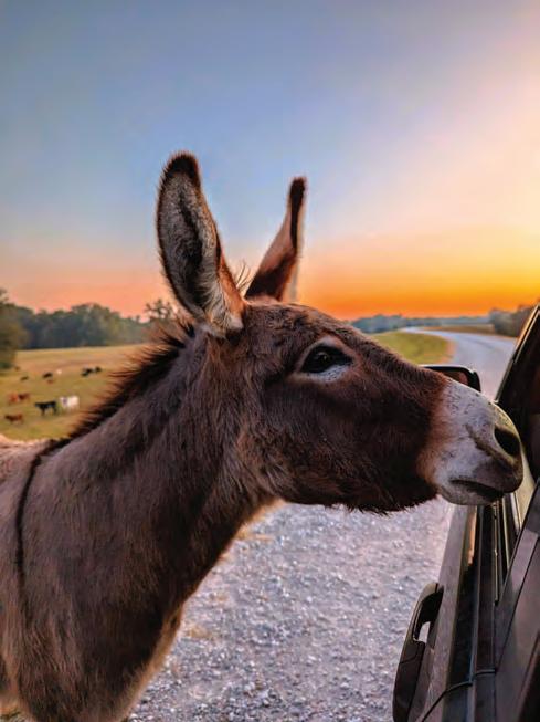 In most places you’re not supposed to ride the levee. But sometimes you must get from Point A to B, whether Point B is an oxbow lake, a hunting camp, or a state of mind. Even if Point B is anywhere but Point A. The levee is certainly an anomaly, but also a dichotomy. The impressive feat of human engineering divides us from, while simultaneously bridging us to, the Mississippi wild. To the east, houses, gins, tornado sirens, and soybean fields dot the horizon. Westward, gnarled vines and cypress knees reclaim the edges of waterways. From atop the levee, the intermingle becomes more clear—Angus cattle loiter at the swamp’s edge while whitetail deer graze in the open. Anytime I am in the Mississippi Delta, I always return to the levee. Most recently, five of us piled into an old Honda to meet with a local known as “Whistle” or “Mr. E.” Despite his old age, Whistle hustled to the top of the levee from a far-off cowshed in a mere thirty seconds, with no qualms about voicing his excitement. This feral donkey has one job; protecting the livestock. But Mr. E is a celebrity now, often blocking the road, demanding treats. After we paid our toll, we headed north on the levee road to chase the sunset, hoping to catch a glimpse of the comet ATLAS. We met another donkey who was certainly less feral, but more cautious, than the previous levee guardian. His herd followed, then lingered, and stared at us with a certain je ne sais quoi. As the cows blocked the open road, we were the ones left to ruminate on topics such as getting from Point A to B, dichotomies, and Chuck Berry. The metaphor leaned somewhere towards c’est levee.
