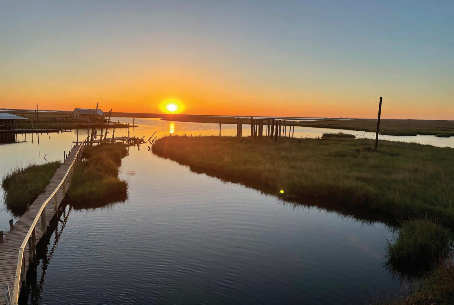 We bided our time until sunset, walking the pier and swinging in the breeze while watching a towering cruise ship leave out the Mississippi. It was an overwhelming feeling of time slowing down at this watery home on the edge of civilization. As Perrin drove us back to shore, he commented that the worst part of coming here, was having to leave. •