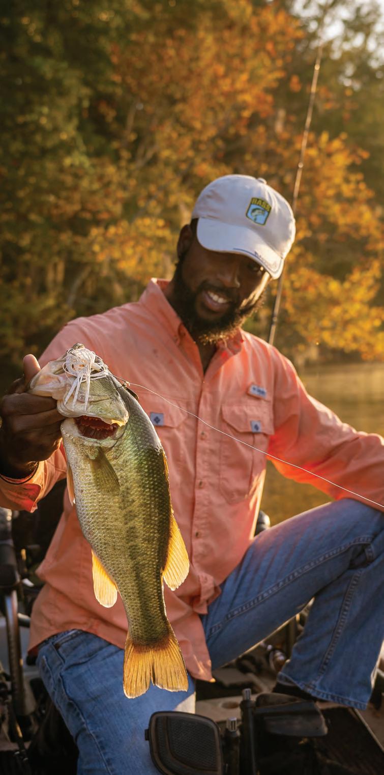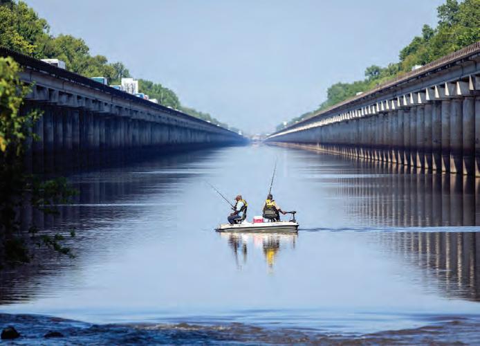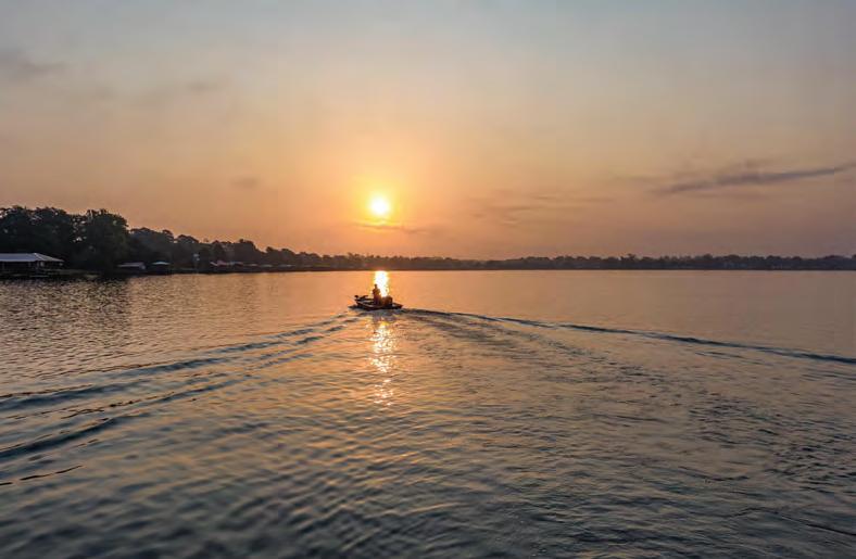 It’s here where Perrin and his chocolate lab host Da Bayou Experience, a right-on-the-water accommodation offering air-conditioned rooms, three gourmet meals a day, and round-theclock fishing. With enough room to sleep eight to ten people comfortably, Perrin hosts a wide variety of groups. The Cedar and Poplar Rooms each offer bunk beds, with their namesakes lining the walls, and both the indoor and outdoor dining areas can seat a crowd. The main attraction here, though, is the water’s edge access to unbeatable fishing.