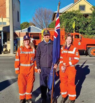 Their first SES ANZAC Day (L to R) Abbie Hetherington, Sarah Trevaskis (Flag Bearer), and Chloe Trevaskis
