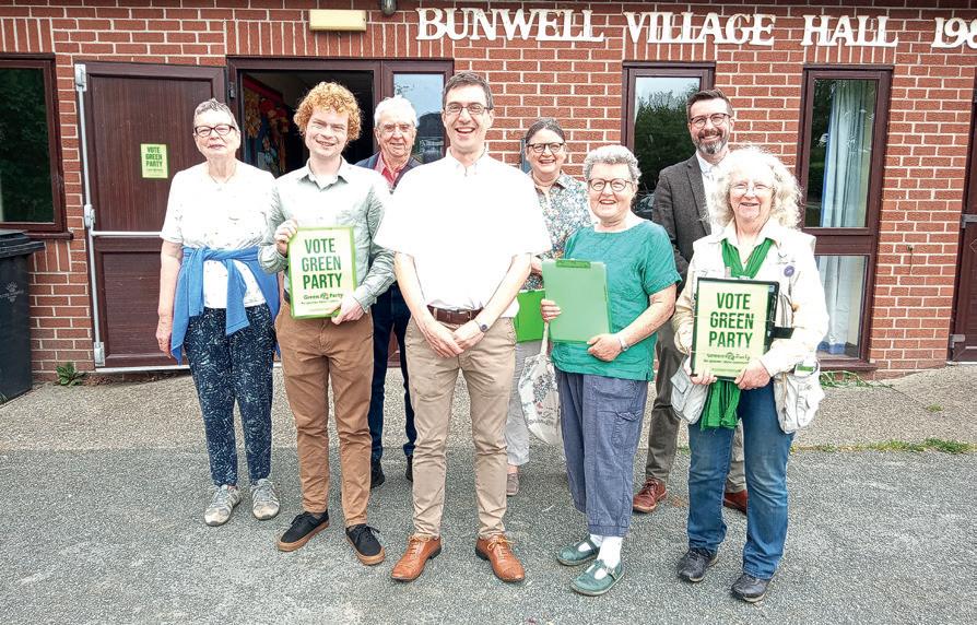 Candidate Catherine Rowett (ex-MEP), leader of the Green Party Adrian Ramsay and Green County Councillors campaigning in the West Depwade by-election pause to celebrate boundary commission news.