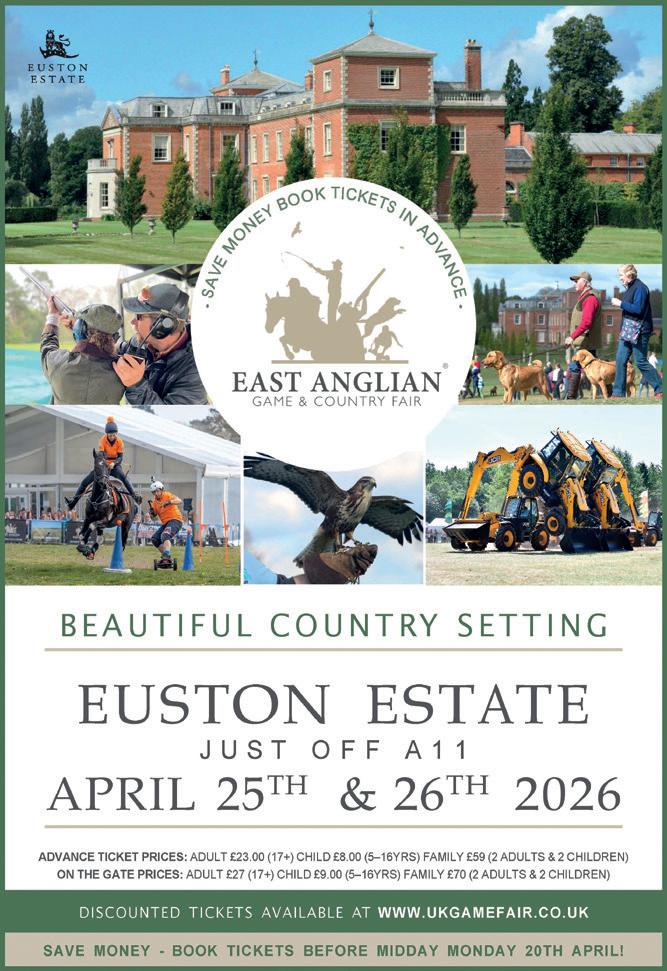 The 22nd East Anglian Game & Country Fair will take place on Saturday 25th & Sunday 26th April 2026 at the prestigious Euston Estate, home to The Duke & Duchess of Grafton, just off the A11 at Elveden, on the Norfolk/Suffolk border.
