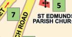 10a. Bridge Street, Nelson House: Now part of Reeds Homestore, this building was once a school run by Thomas Noakes. Local legend claims a young Horatio Nelson attended, though this is likely a story by George Manby. Original carrstone is visible along the side of the shop.