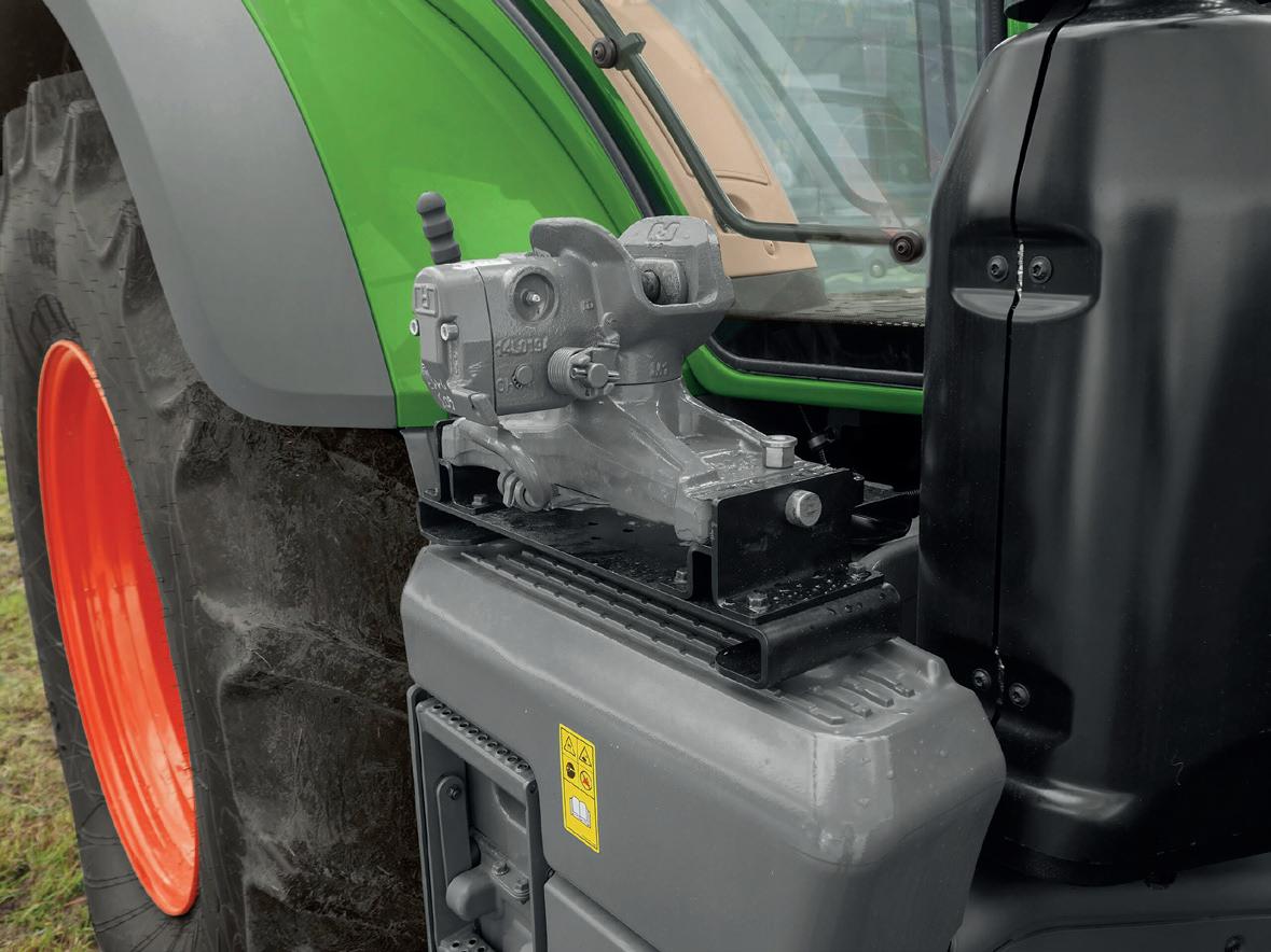 Additional storage to help 300 and 700 Vario customers has been de signed in the form of a base plate fit ted to the right side of the tractor. This enables a holder to be mount ed for the trailer hitch, or a hand wash container with integrated soap dispenser.