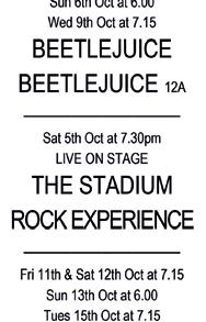 7:30pm. Crammed full of songs from the biggest mainstream rock acts. 6-piece band with impressive staging, effects & lighting. Not to be missed! Book early to avoid disappointment. Tickets: £19.50, Conc. £19, Friends £18.50, available at: www.leistonfilmtheatre.co.uk