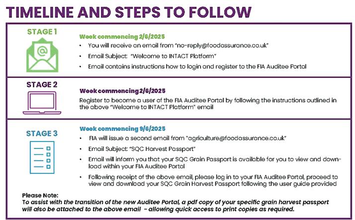 same way as previous paper passports. From 2 June, you should have received an email from no-reply@foodassurance.co.uk containing details on how to register and login to the portal. A second email should then have been sent from agriculture@foodassurance.co.uk, informing you that your SQC Grain Passport was available to view and download from the FIA Auditee Portal. Following receipt of the above email, you should have logged into this portal and downloaded your passport ready to print.