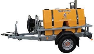Two 300L Baffled Polyethylene Water Tanks. Interlink fast drain valves. 1800kg Rated Running Gear. Lockable Tow Hitch. Low Pressure Detergent Injection. 16M Twin Wire 3/8 High Pressure Hose Temp – 80/120 degrees